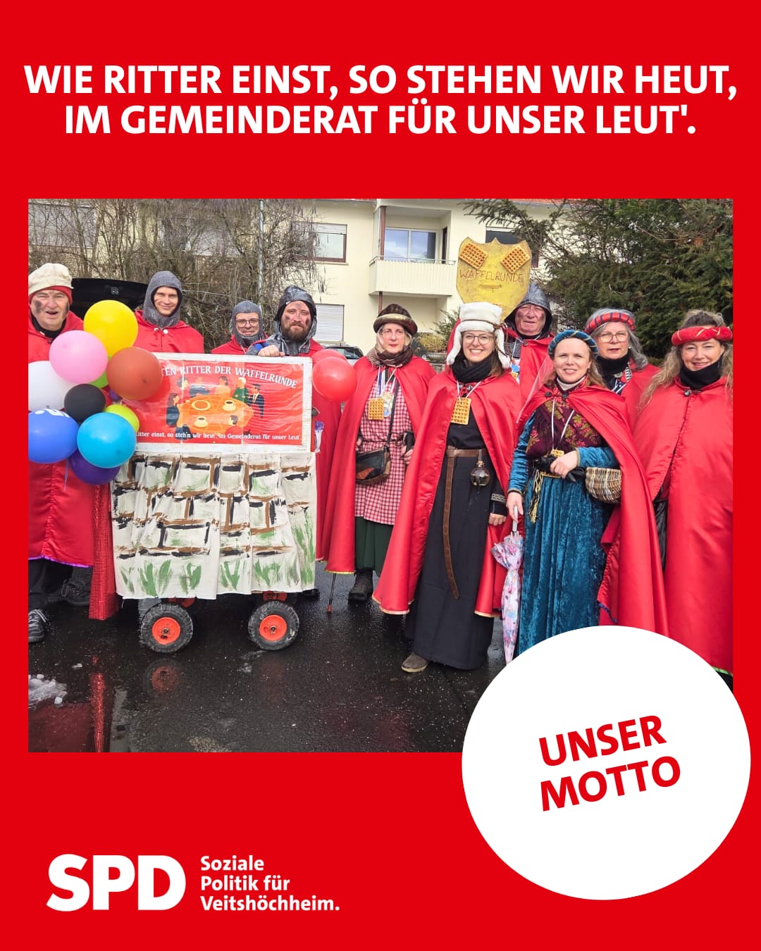 Unsere KandidatInnen als „Rote Ritter der Waffelrunde“. Mit dem Spruch „Wie Ritter einst, so steh’n wir heut’, im Gemeinderat für unser Leut’!“ betonten die Roten ihr soziales Engagement