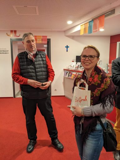 So feierten die Teilnehmenden den Fasching an diesem Samstag auf spektakuläre und doch ungewöhnlich stille Weise: ohne Konfetti, aber mit reichlich Erkenntnisgewinn; ohne Tusch, doch mit nachhaltigem Eindruck. Im Anschluss kehrte die Gruppe bei Eis Stephan ein, um bei Kaffee und angeregter Unterhaltung das Erlebte Revue passieren zu lassen. Hier einige Stimmen: „ Eine tolle Veranstaltung!“ „Ein gelungener Ausflug!“