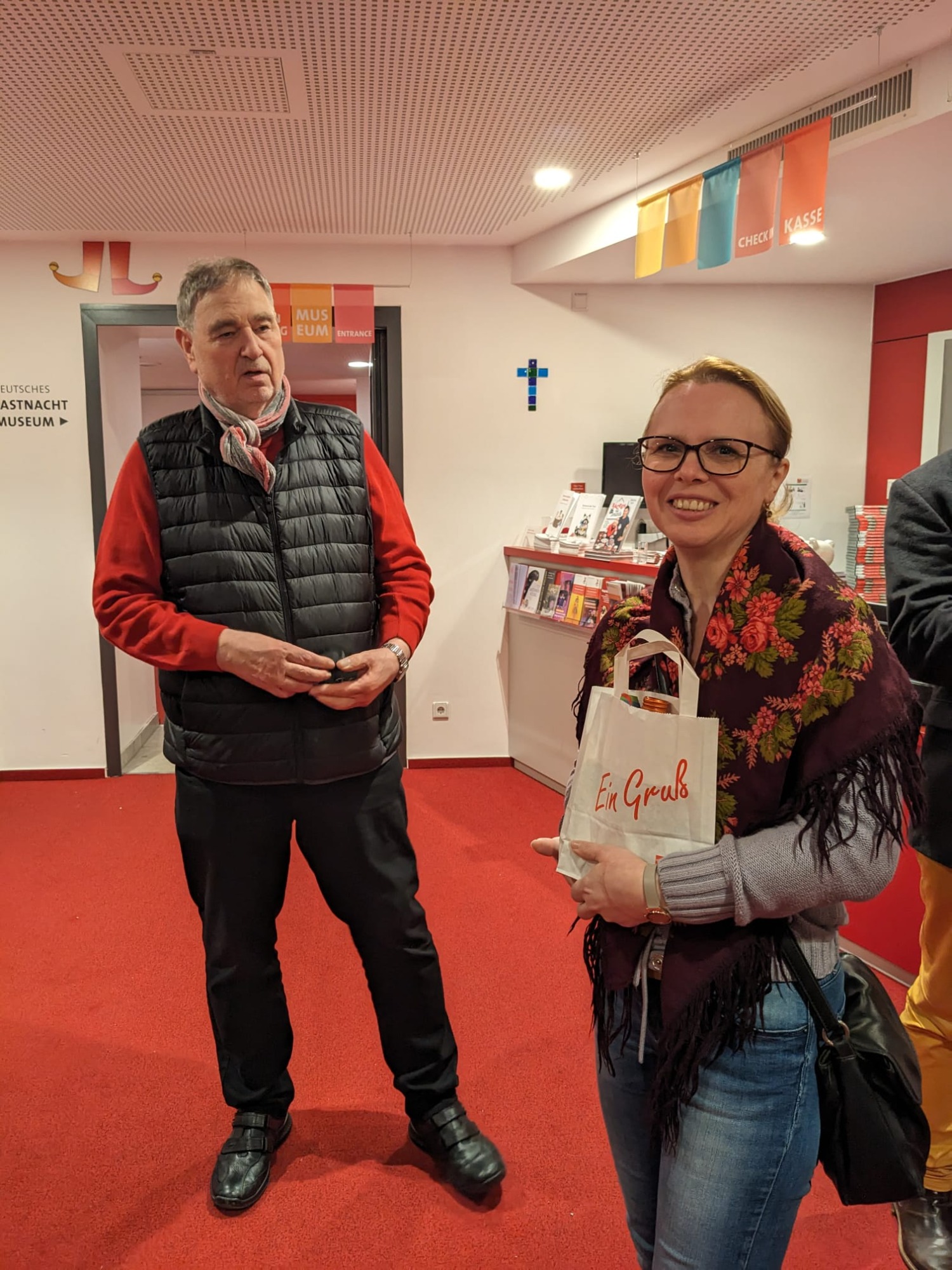 In der Führung selbst spannte Schlereth einen weiten Bogen – von den Ursprüngen der Fastnacht bis zu ihren heutigen Erscheinungsformen. Anschaulich, ja bisweilen mit augenzwinkernder Dramatik, schilderte er die Entwicklung von Fasching und Fastnacht, erläuterte Zusammenhänge zwischen kirchlichem Kalender und närrischer Ausgelassenheit und zeigte auf, wie eng Religion und Brauchtum miteinander verwoben sind. Dass die närrische Zeit unmittelbar vor der Fastenzeit liegt, erschien plötzlich nicht mehr als bloßer Zufall, sondern als wohlplatzierter dramaturgischer Höhepunkt im Jahreskreis.