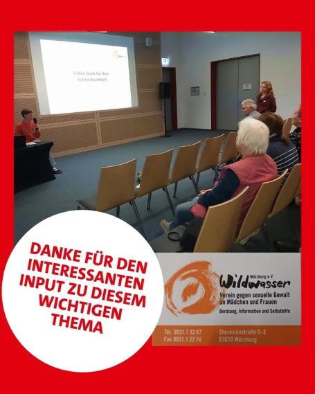 1Am 9. Dezember 2025 luden der SPD-Ortsverein Veitshöchheim, der VdK Veitshöchheim und Kostbar e. V. zu einem Informationsabend unter dem Motto „Stopp Gewalt gegen Frauen“ in die Mainfrankensäle ein. Hauptreferentin war Katharina Amon, seit 2019 Traumaberaterin bei Wildwasser Würzburg e.V.